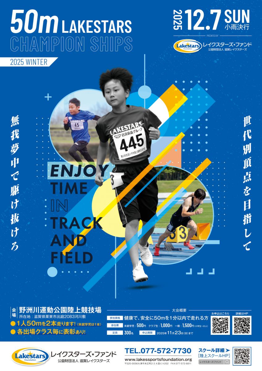 ■参加費 未就学児500円 滋賀レイクスターズ陸上クラブ/ロウイングクラブ/体育遊びスクール生1,000円 一般1,500円(小学生~大人)
